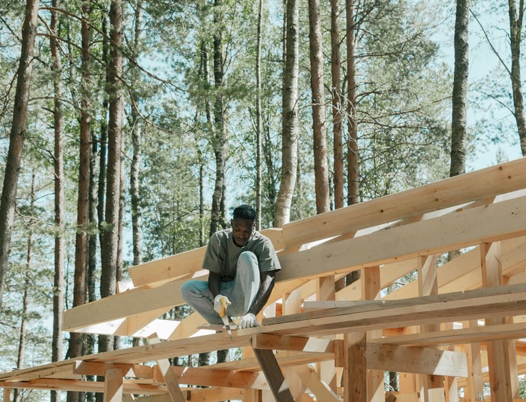 Charpente Traditionnelle : Esthétique et robuste, elle permet l'aménagement de combles grâce à ses larges sections de bois massif. Idéale pour le cachet de l'ancien ou les projets sur mesure.